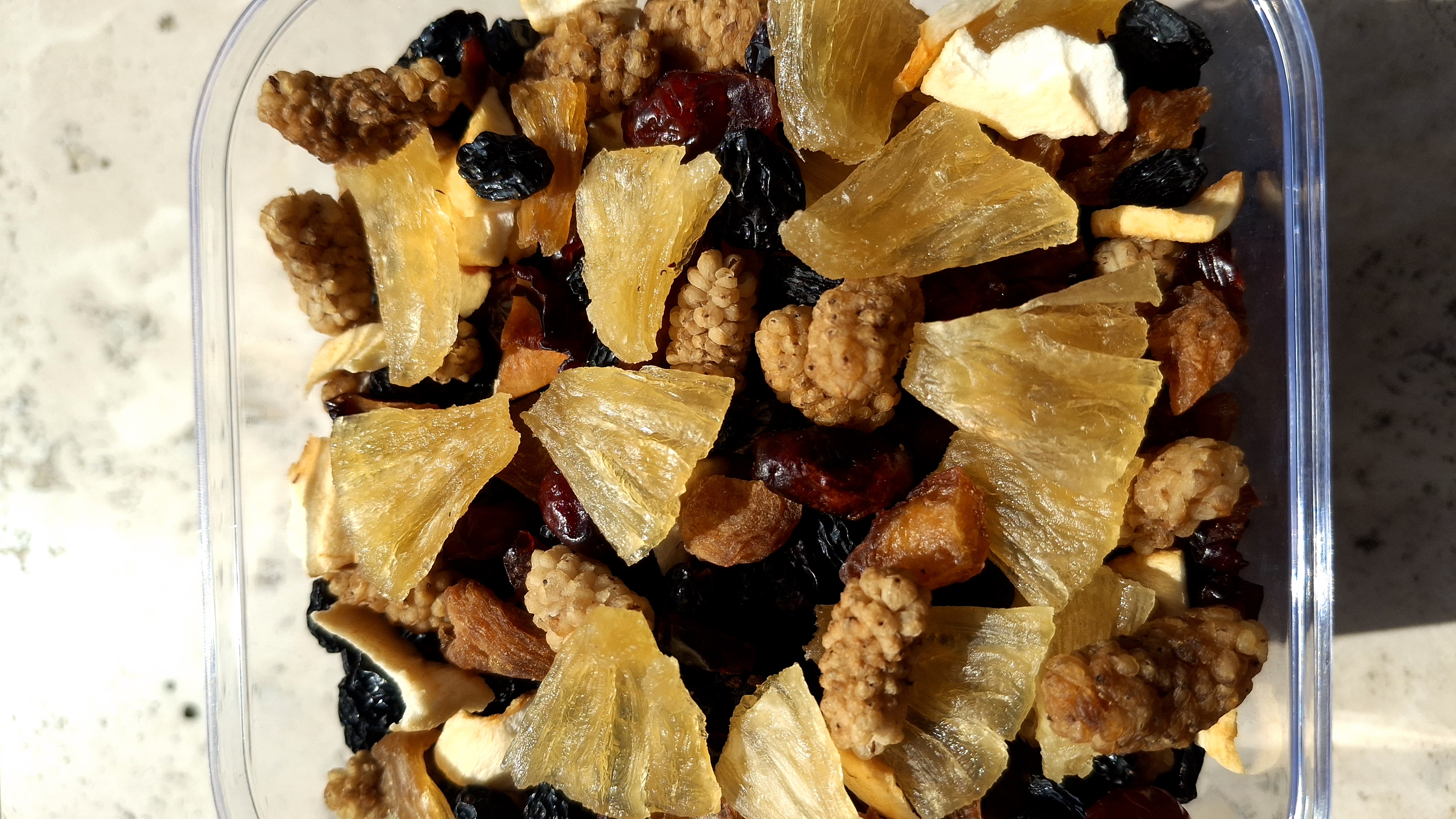 اجیل چای تازه شامل ، مویز ، خرما ، کرنبری ، توت خشک ، برگه زردآلو آفتابی، توت فرنگی تایلندی ، گیلاس بری ، گوجی بری ، برگه الو ، انجیر اسلایسی ، انجیر خشک